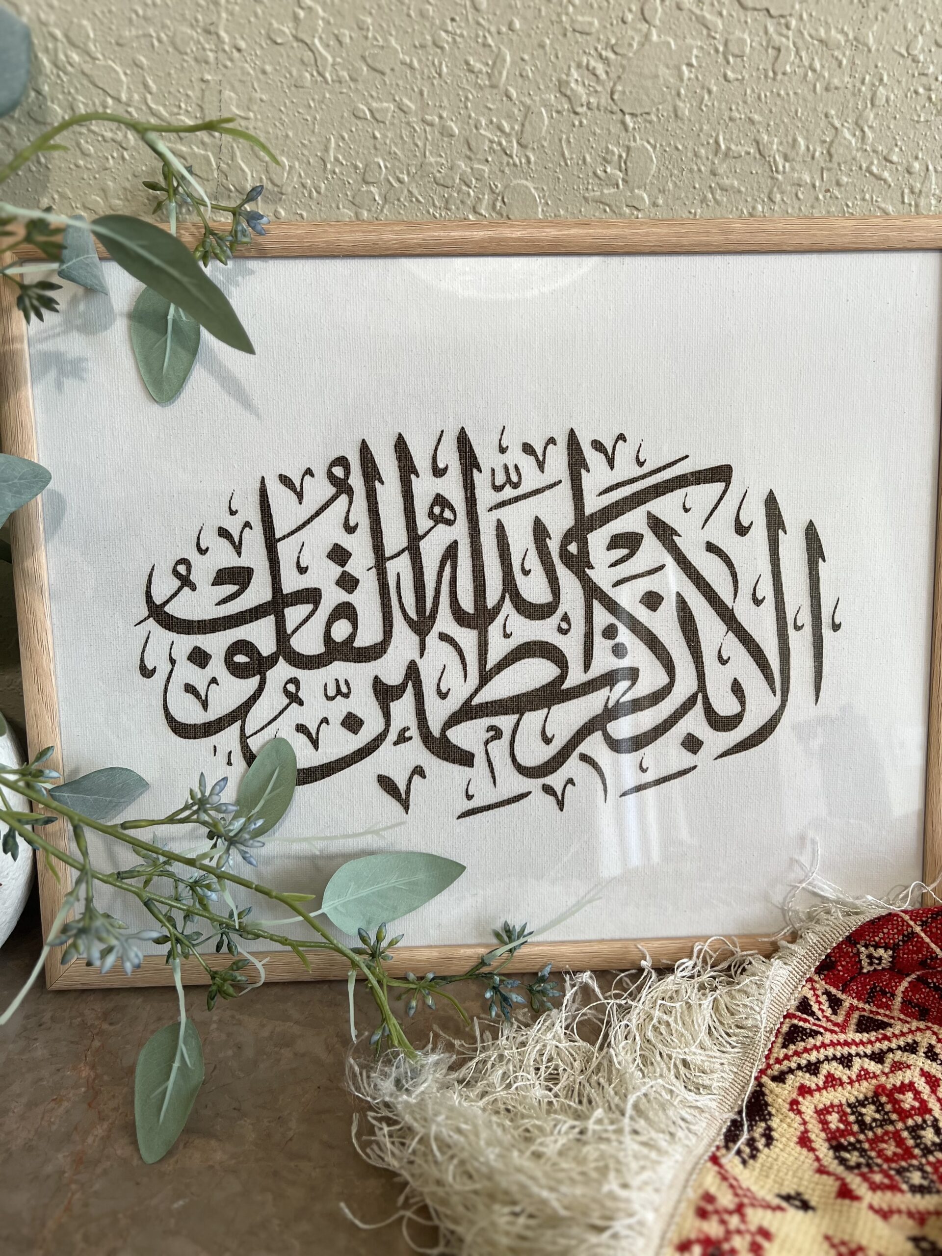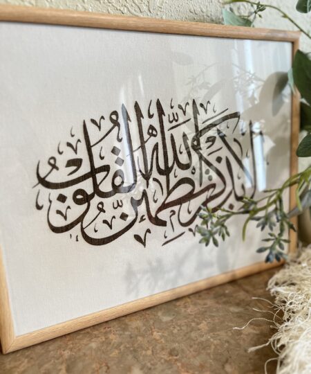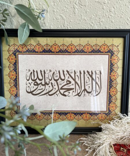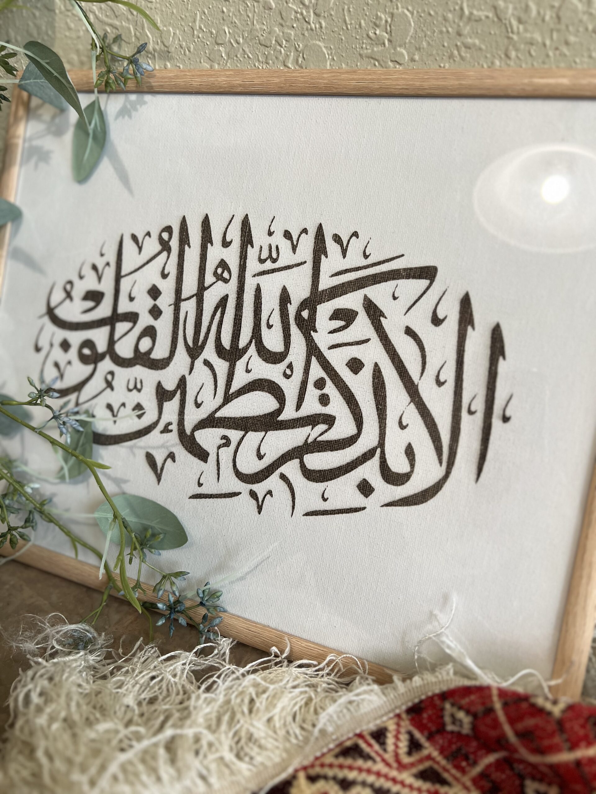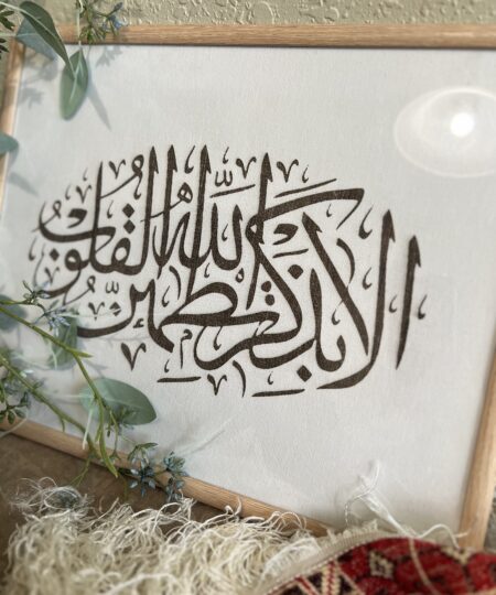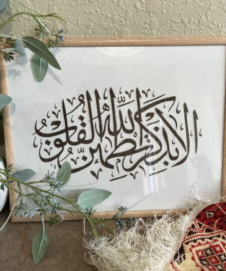 Can be customized with whatever you choose; an ayah from the Quran, a name, date, or quote.