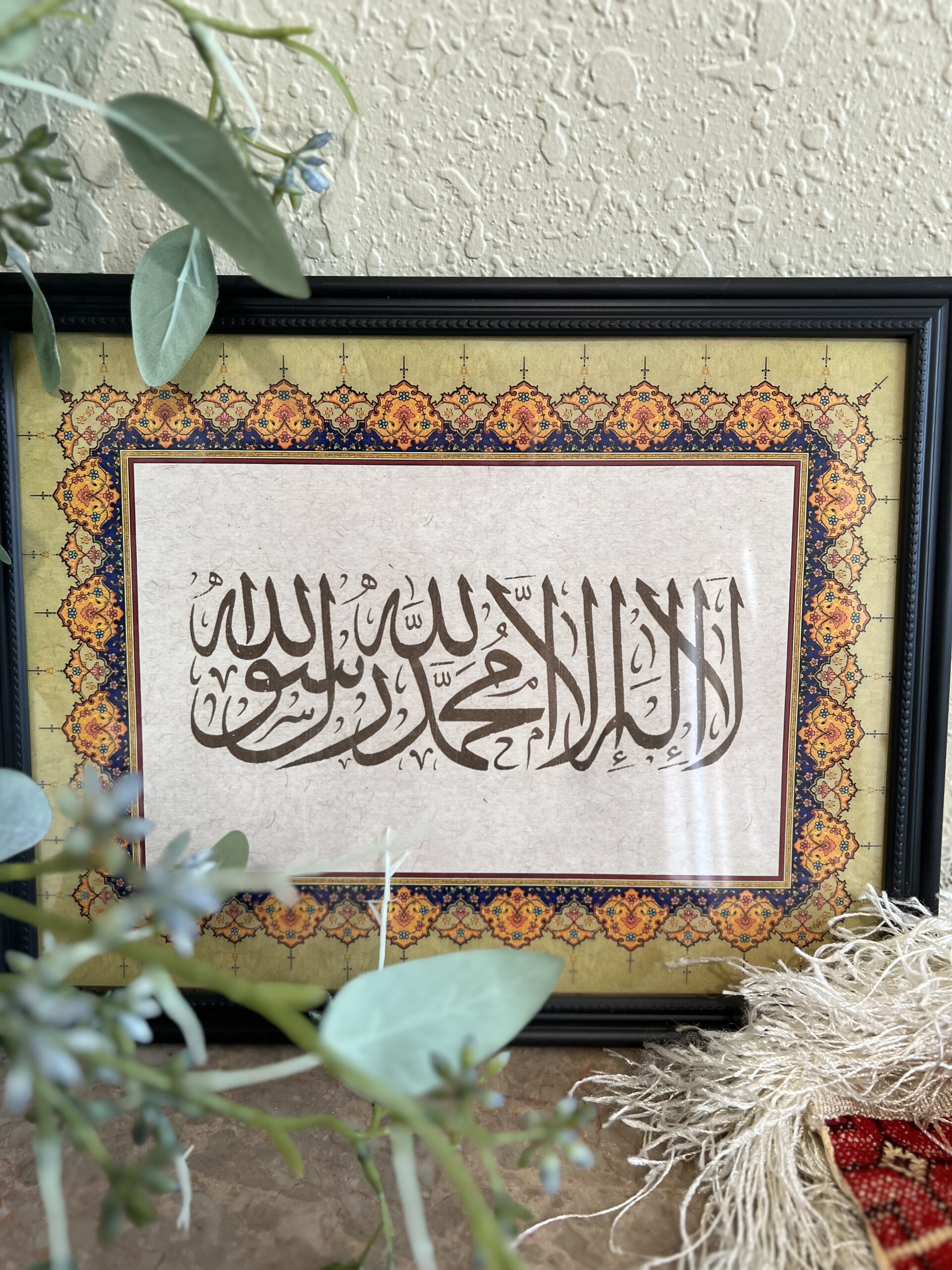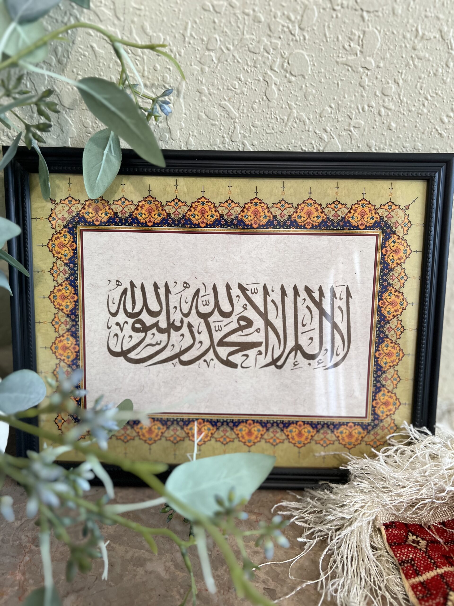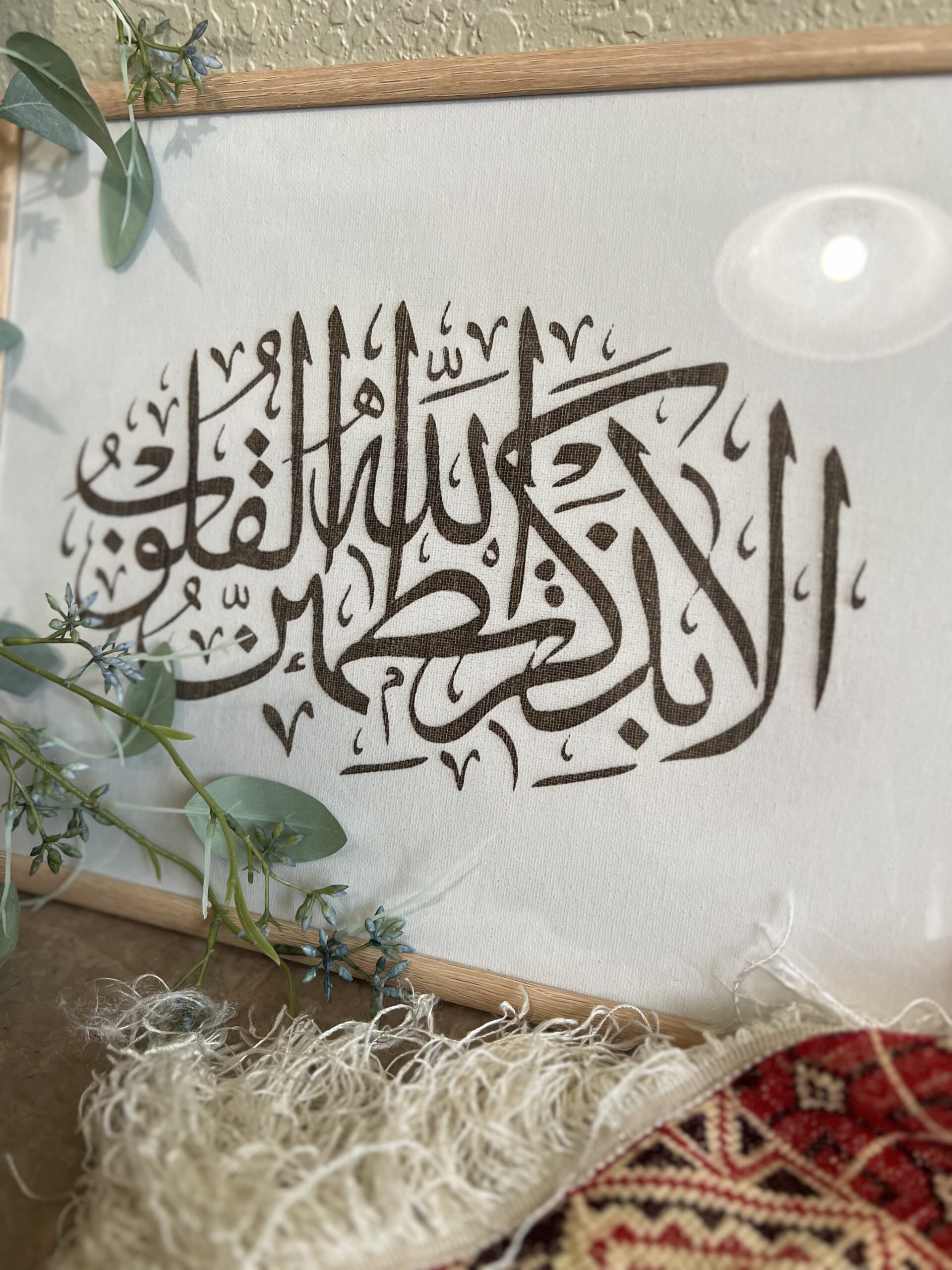 Can be customized with whatever you choose; an ayah from the Quran, a name, date, or quote.